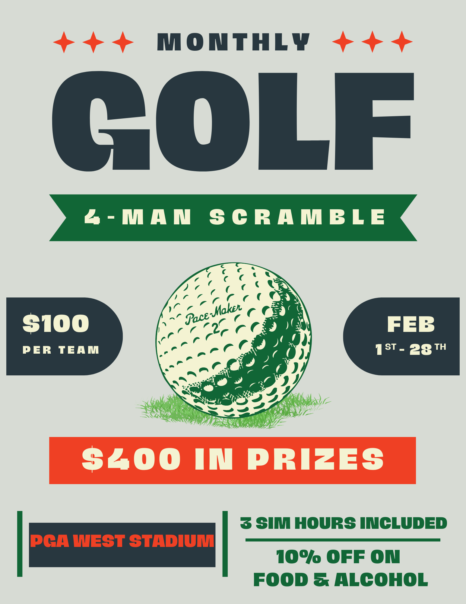 Join us at Swing Lab Performance Golf for our Monthly 4-Man Scramble Tournament.